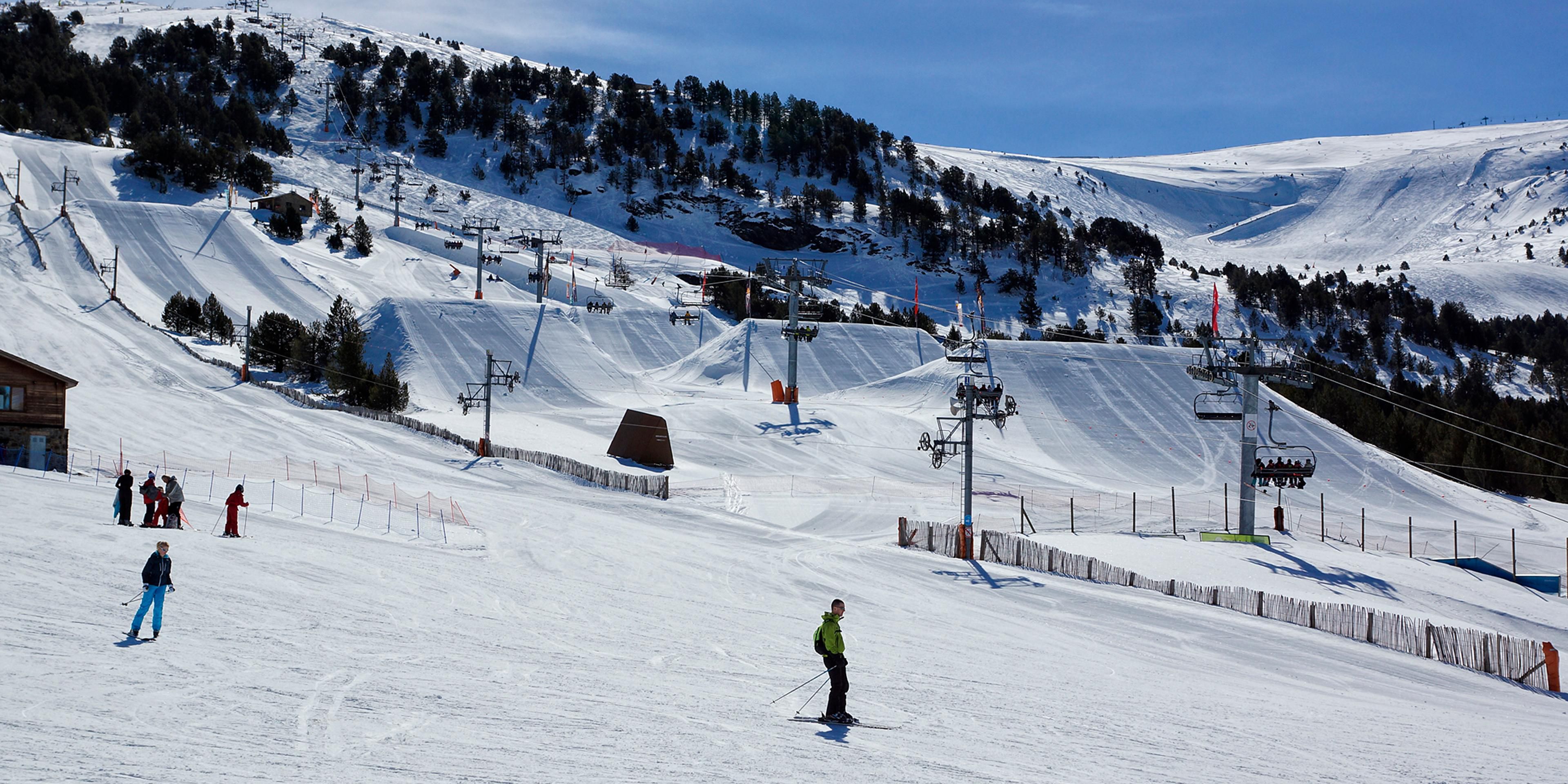 Slopes Of Winter Resort El Tarter And Pyrenees Mountains In
